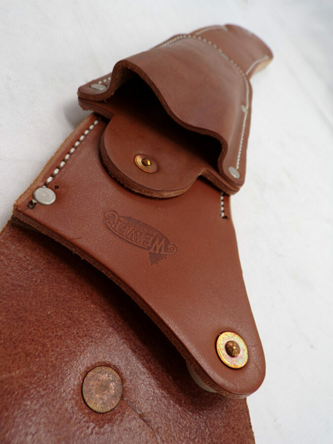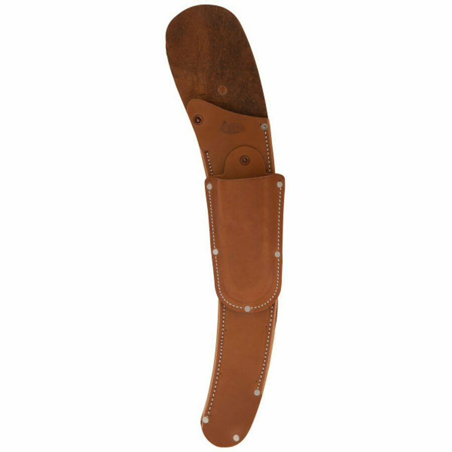 Description: Perfect for ground workers, these scabbards feature 2" slots for quick and easy attachment to work belt, Leather Straight Back w/Pruner Pouch