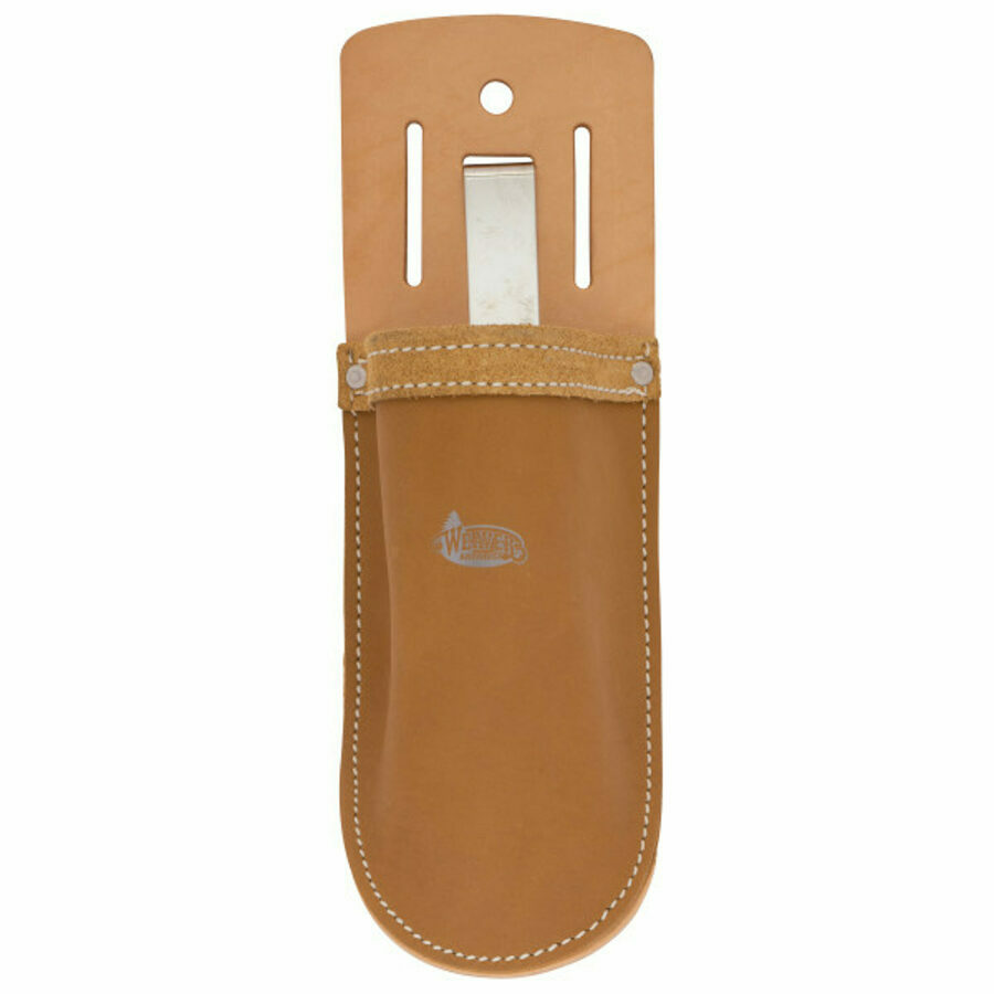 The 12-1/4" natural top grain steer hide leather back has a 2" clip for quick attachment to work belt or 2" slots to slide belt through.
