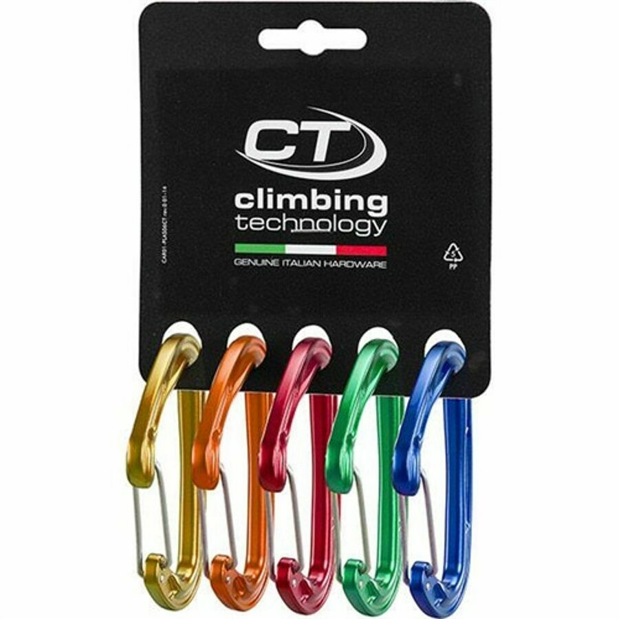 Description: Packaging composed by five FLY-WEIGHT EVO carabiners in five different colors (gold, orange, red, green and blue) suitable for assembling your own lightweight quickdraws of various length, or to use as carabiners for friends.