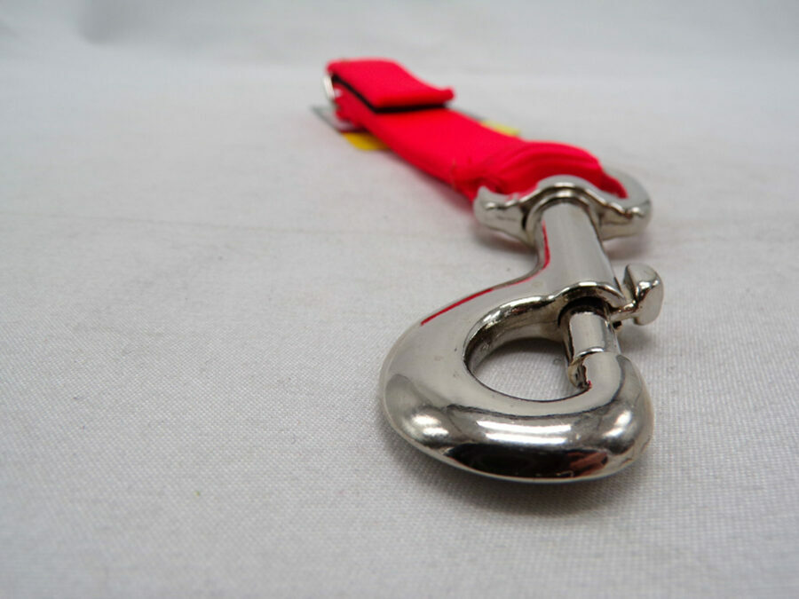 Nickel plated bolt snap for attachment to a belt or other equipment.