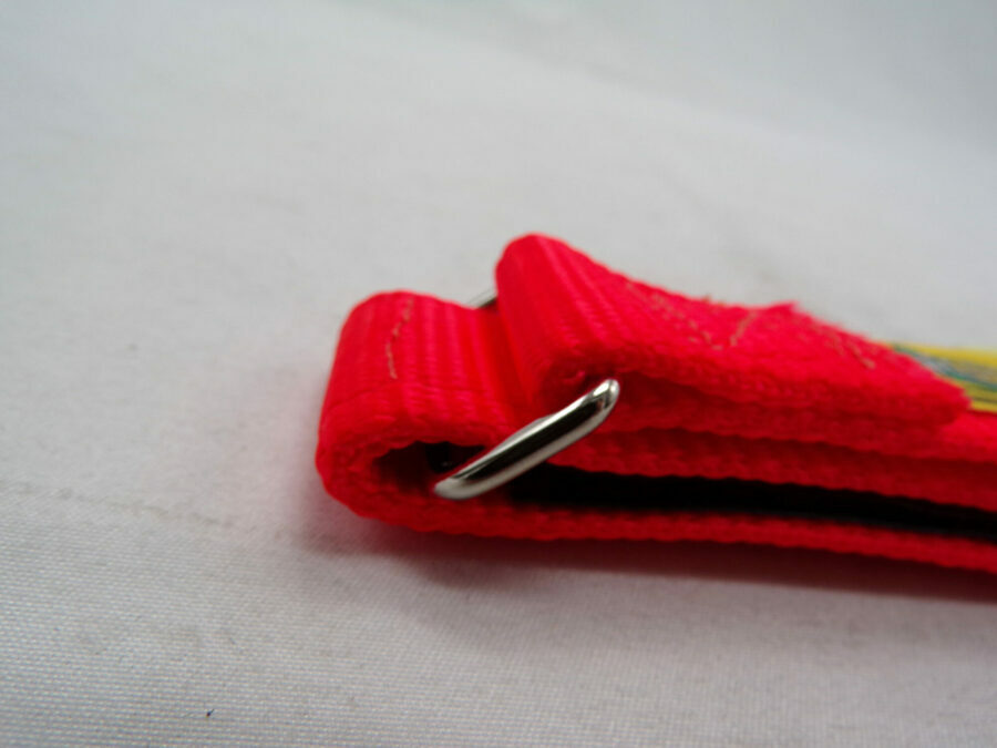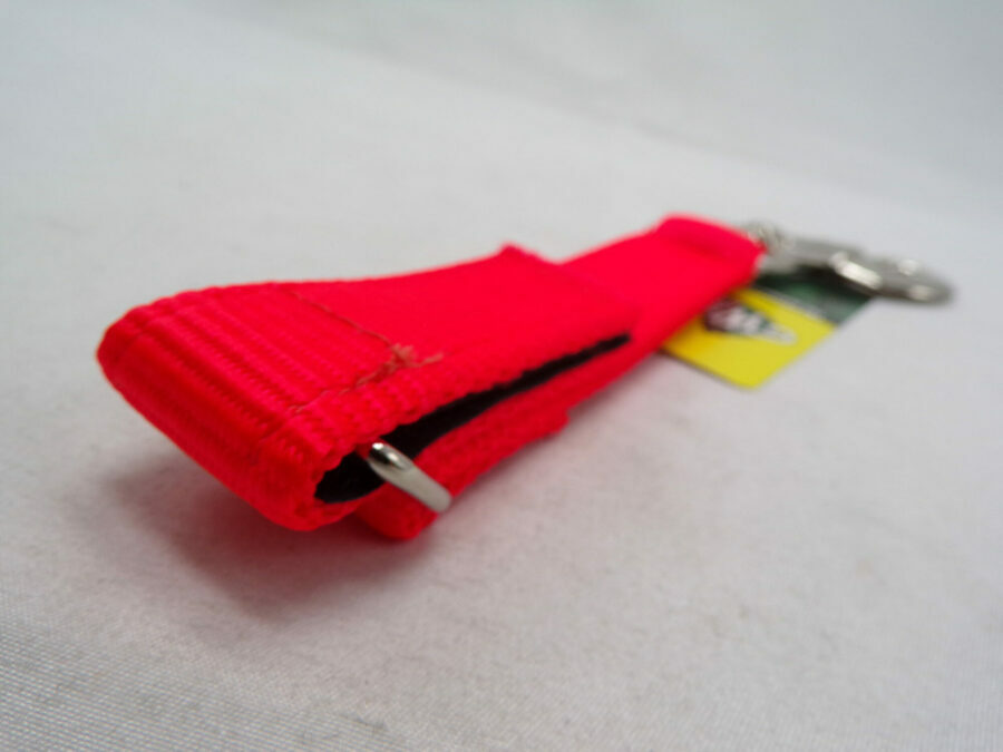 Details: Bright 1" fluorescent blaze orange nylon webbing secures around can or water bottle and through tape roll with hook and loop closure.
