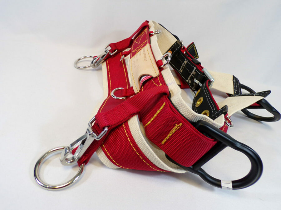 Features a loop for holding carabiners and two nylon utility straps with a chrome brass 200 snap and a 2" nickel plated ring to keep tools handy.