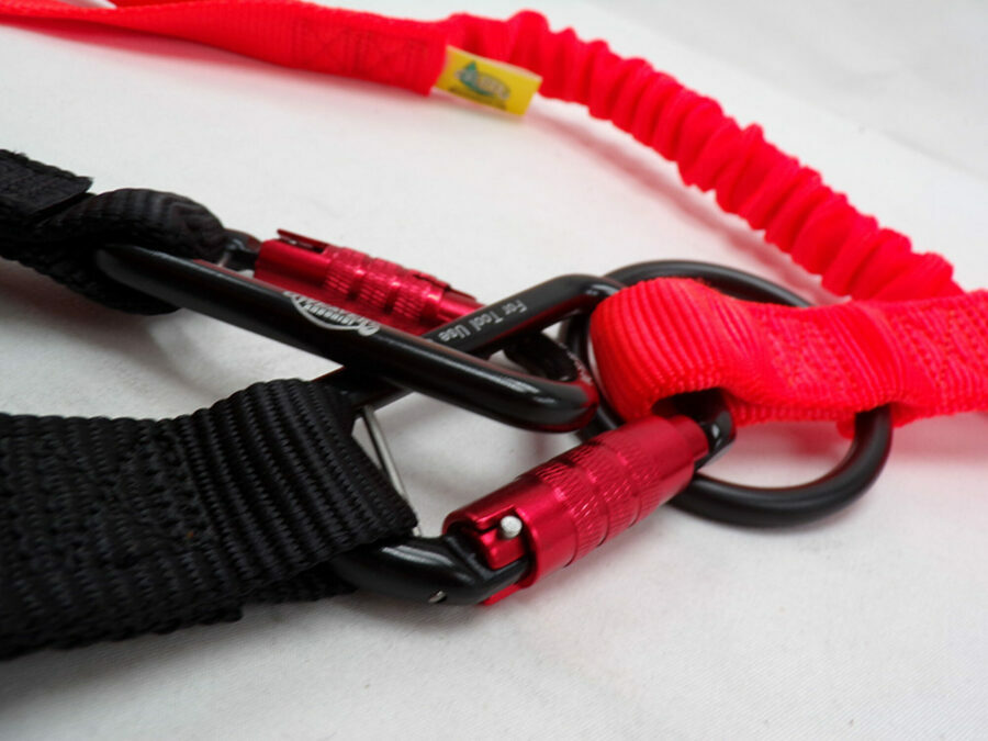 Each black webbing strap is equipped with a single locking, double action, cold formed aluminum carabiner, making it easy to swap chainsaws. For tool use only. Not for life support applications.