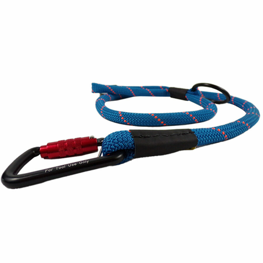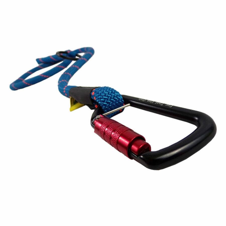 Equipped with a single locking, double action, cold formed aluminum carabiner at one end.