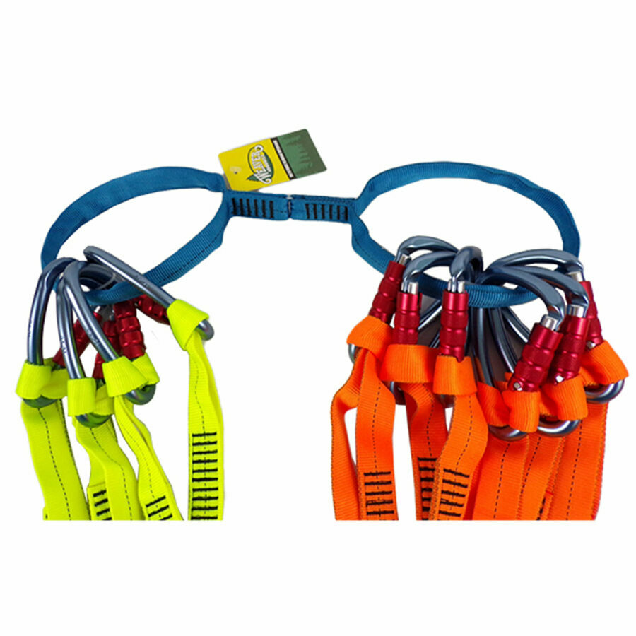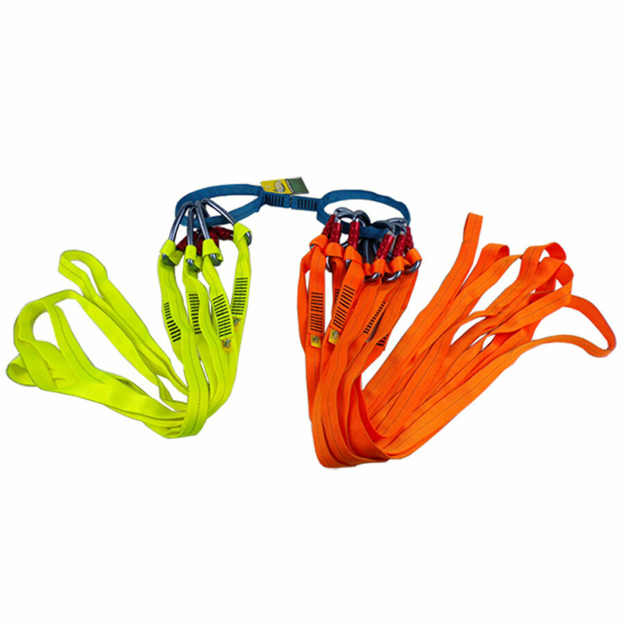 Description: Convenient kit includes six 36" Blaze Orange Loop Runners, four 30" Orbit Yellow Loop Runners, ten Climbing Technology Key TG Carabiners and two durable nylon bales for storage.