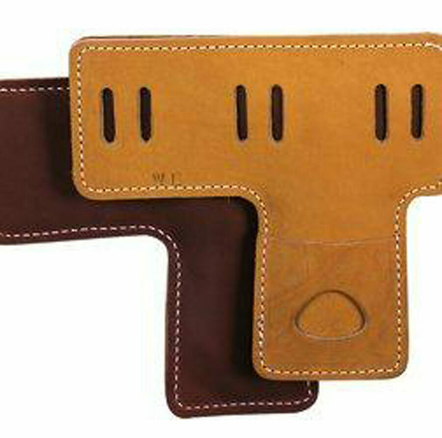 Details: Soft, 1" thick foam liner is constructed with an outer layer of yellow top grain latigo steer hide leather and an inner layer of soft brown, oil tanned top grain steer hide leather to provide extra comfort and protection to the back of leg and calf