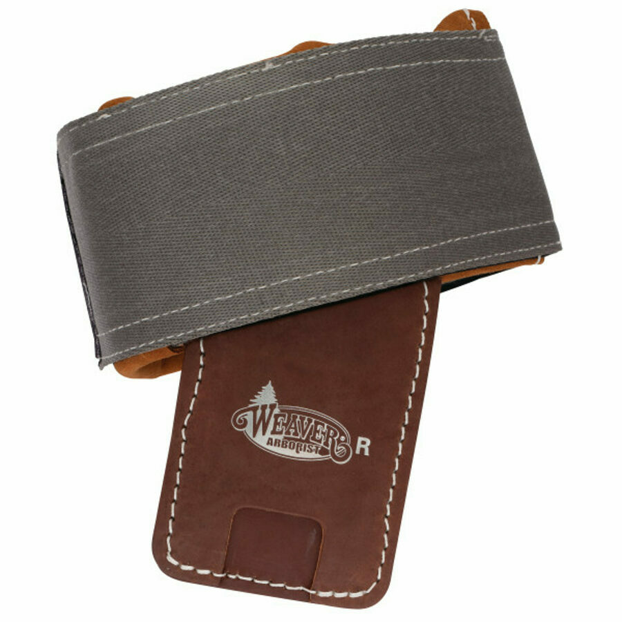 Description: These climbing pads are constructed using sunset harness leather with an English toast suede lining for nonslip comfort. Wrap around calf with a 4-inch wide hook-and-loop strap that offers a perfect fit and distributes pressure evenly. An angled leather tunnel allows the climber shank to run securely when combined with the appropriate metal bracket. Sold per pair. (Note: Metal formed plates are not included.)