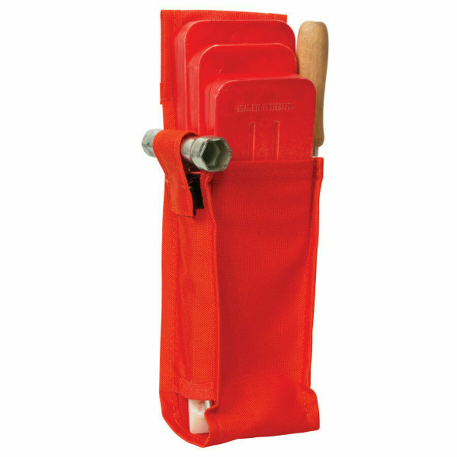 Features 3-1/2" wide pocket that will hold two large wedges and one small wedge, a 2" wide pocket that holds a chain saw wrench and a chain saw file holder.