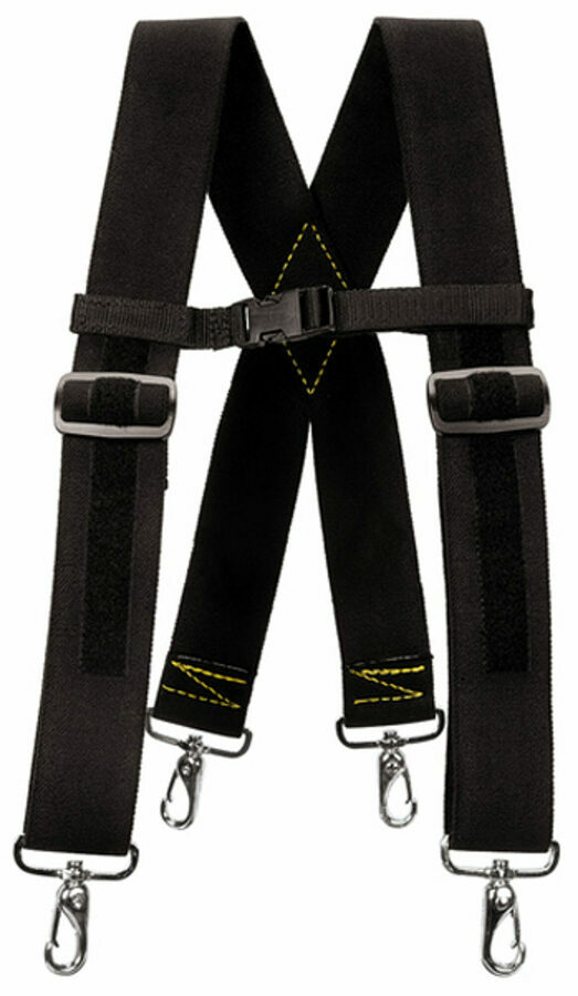 Description: Removable, adjustable 2" suspenders help distribute the weight of saws, scabbards and other accessories