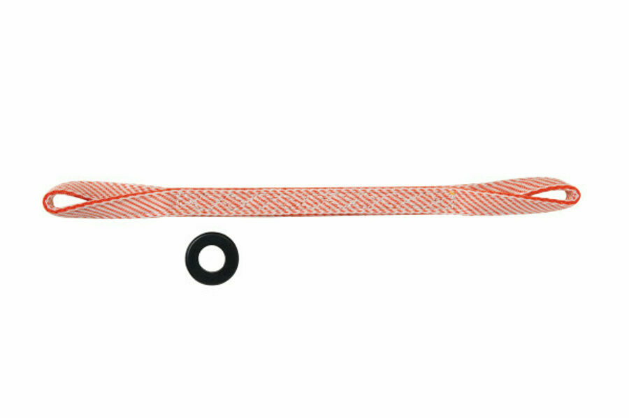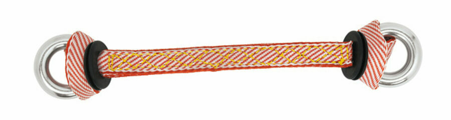 Description: Suspension bridge has a striped white and dark orange Spectra fiber overlay for strength and abrasion resistance that surrounds a black nylon tubular webbing core to provide for additional wear inspection. Aluminum "O" rings not included.