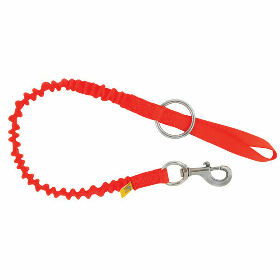 Details: 1 inch wide double box-stitched nylon webbing strap with 3/4 inch elastic easily adjusts by attaching the ring to a snap on a saddle or belt.