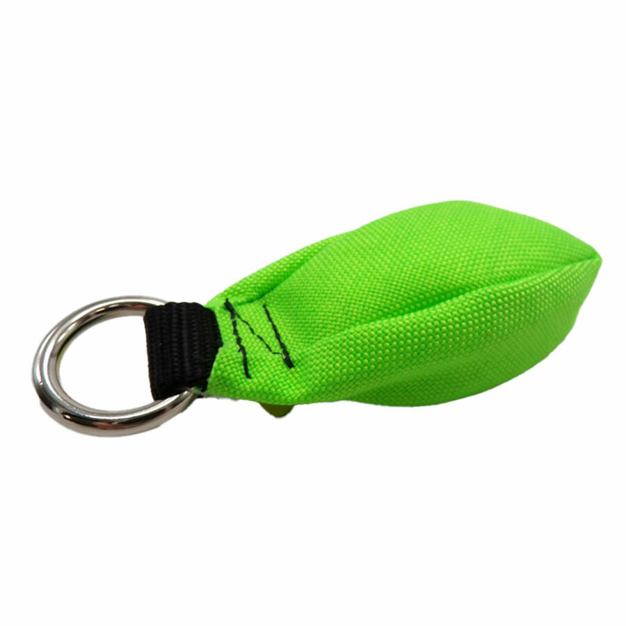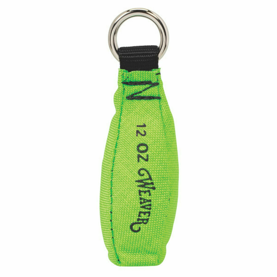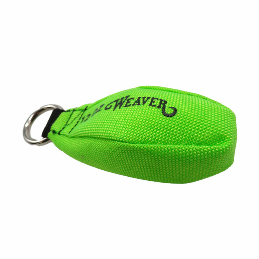 Description: The aerodynamic design helps increase the range of the throw. The moving action of the #8 coated lead shot in the Cordura covered latex pouches helps prevent hang-ups in trees. A 7/8 in welded nickel-plated ring for rope attachment is box-stitched to each weight.
