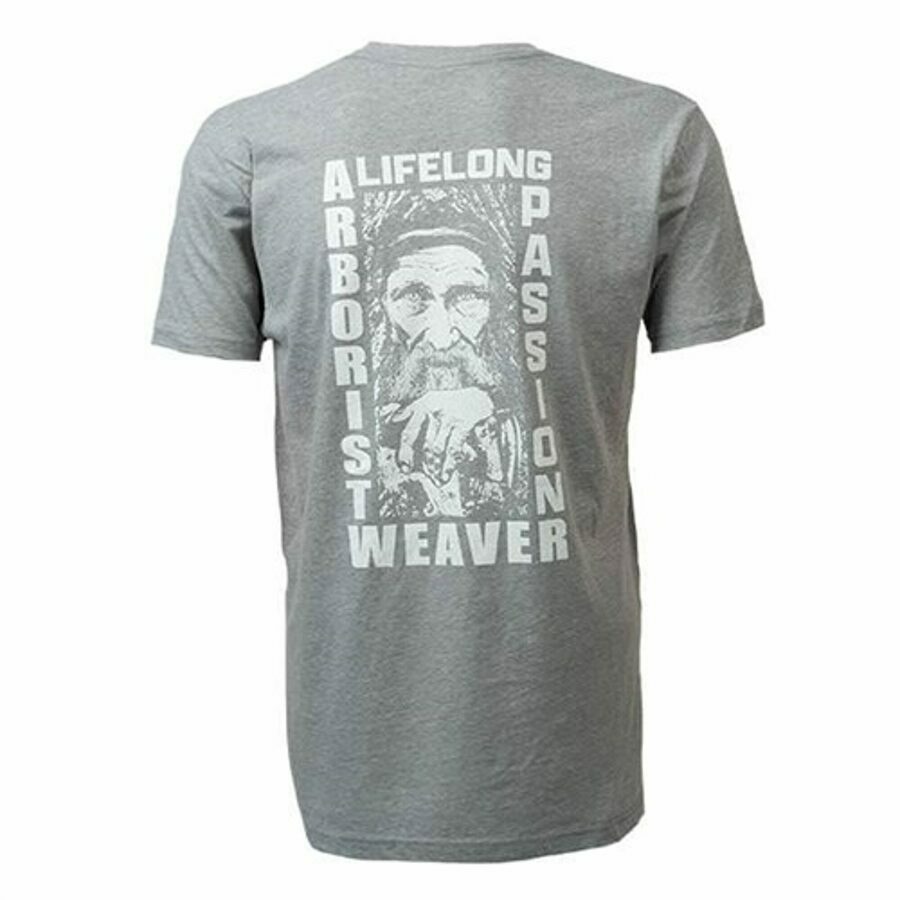 Description: Express your love for the arborist lifestyle with this comfortable polyester and cotton blend tee you'll want to live in. Features our lifelong passion graphic on the back and a small Weaver arborist logo on the front.