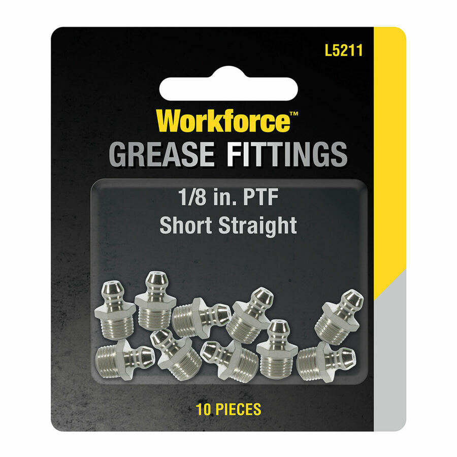 Description: Workforce™ Grease Fittings, 1/8" Straight PTF, 10-Piece