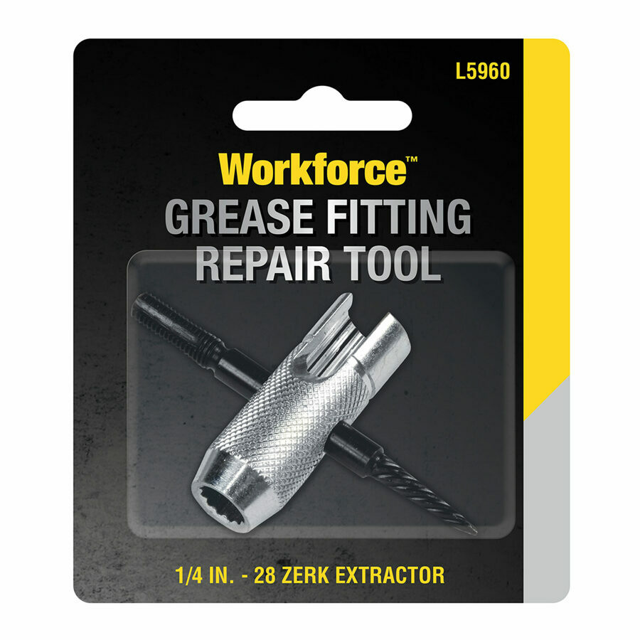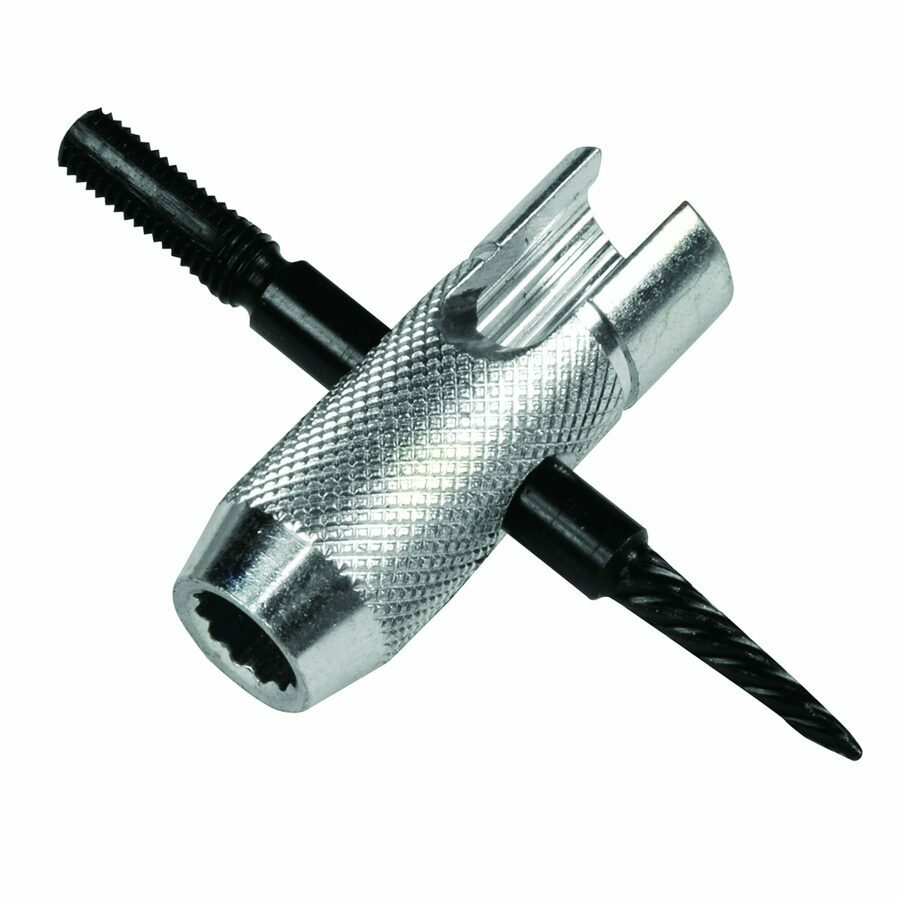 Details: Re-taps 1/4 in. - 28 threads Installs 5/16 in. and 3/8 in. hex straight or angle-type fittings Removes 5/16 in. and 3/8 in. hex straight or angle-type fittings “Easy-out” removes broken 1/4 in. NPT fittings