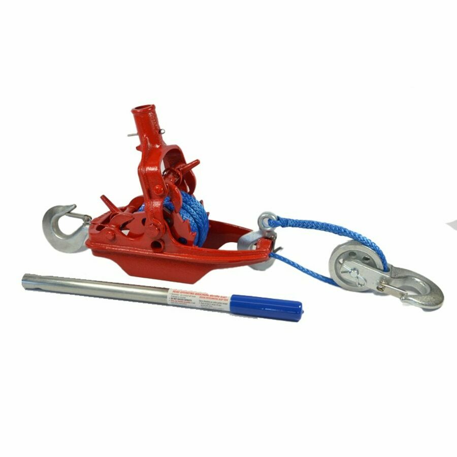 Industrial hand ratchet puller/hoist 3 ton capacity 35ft. Amsteel Blue® manufactured by Samson Rope Comes complete with 3 hooks—frame hook, end hook, and tackle block hook 24 lbs. of solid ductile and malleable iron construction More built-in safety factors than other brands Easily field repairable and inexpensive to maintain The More Power Puller® lasts for generations The More Power Puller® includes a two-year limited warranty Source: USA