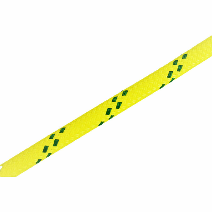 Description: Polydyne is a double-braided rope that utilizes a polyester sleeve over a nylon core. Despite the dissimilar stretch characteristics of these fibers, Yale engineers have produced constructions where both fibers contribute. The resulting rope has high breaking strength and more stretch in its working load range, which in many applications is a plus. Polydyne is up to taking more dynamic abuse without being degraded prematurely. Take special note of the working energy-absorption rating, which is the amount of energy a rope absorbs before reaching its working load. The ultimate energy absorption of this rope is also correspondingly high. All this and a tough polyester jacket make this a long-wearing rope with extraordinary dynamic capabilities.